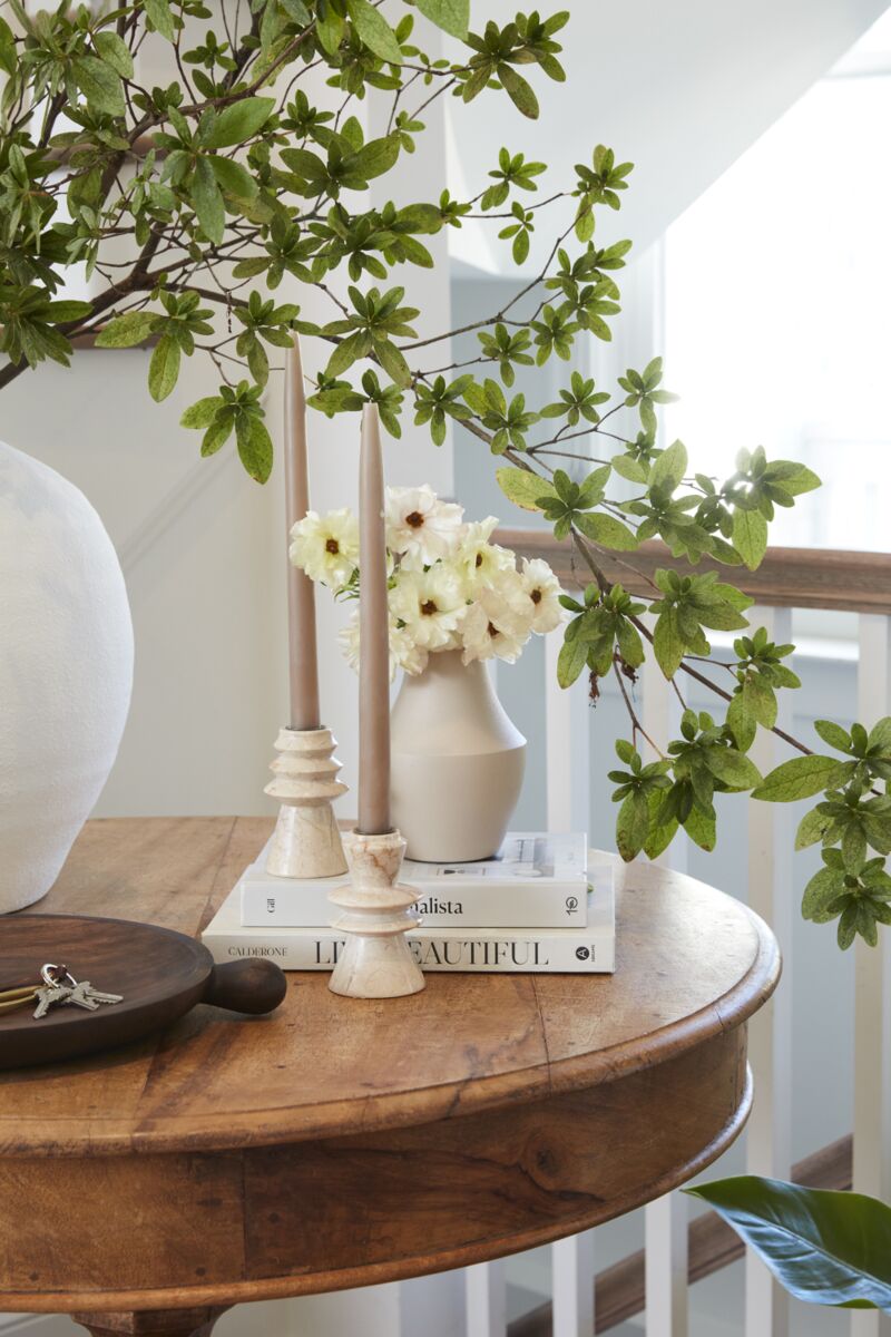 El aspecto y la sensación elevados del mármol se combinan con la silueta discreta, de perfil bajo y apilada del candelabro Cairo. Con una taza de metal para una vela cónica, una base acampanada, un estriado en la parte superior y un impresionante mármol tostado con toques de rosa y blanco, este versátil recipiente neutro es una hermosa base para exhibir velas únicas. Coordina con el otro estilo de El Cairo y con materiales mixtos, desde cerámica hasta vidrio y tonos de madera.