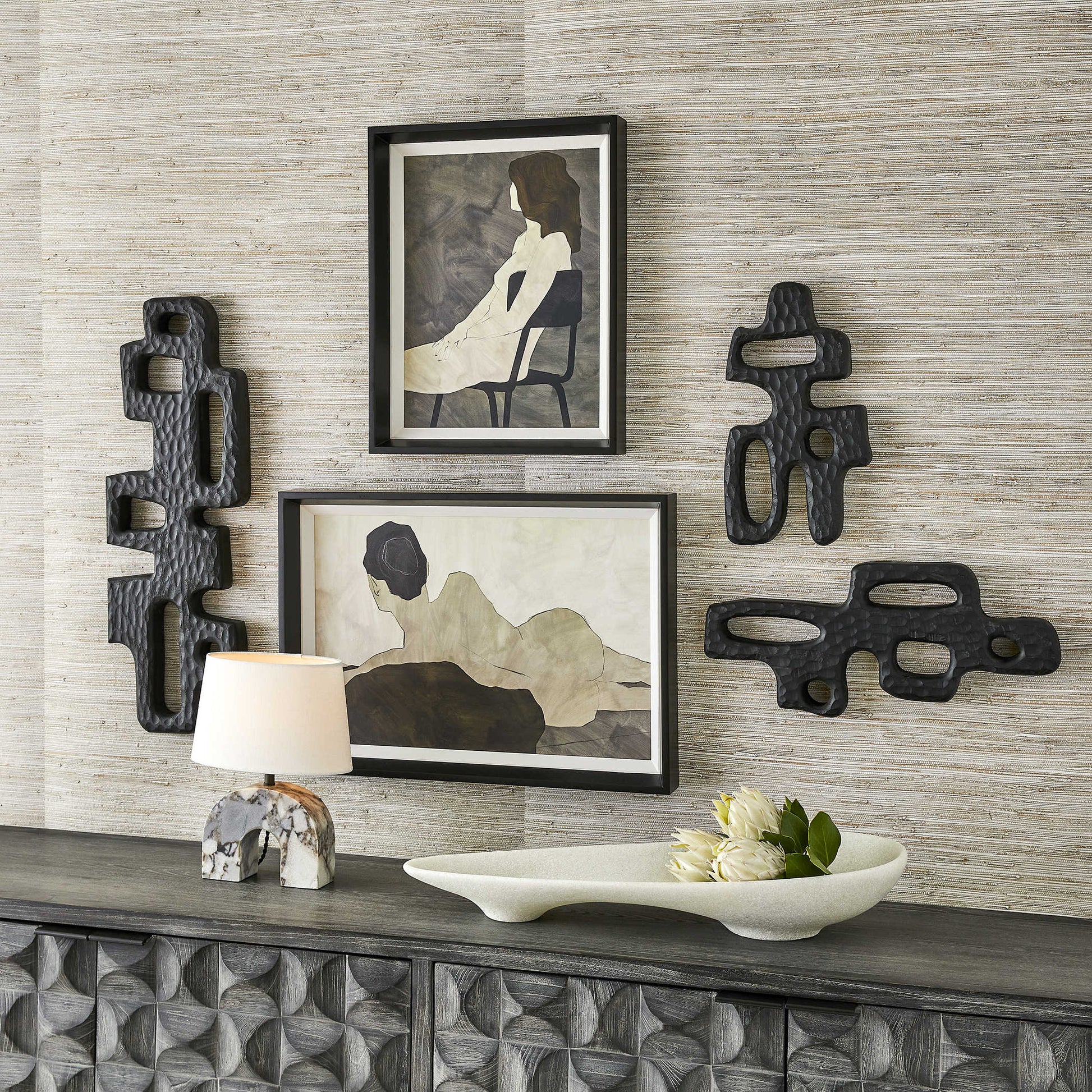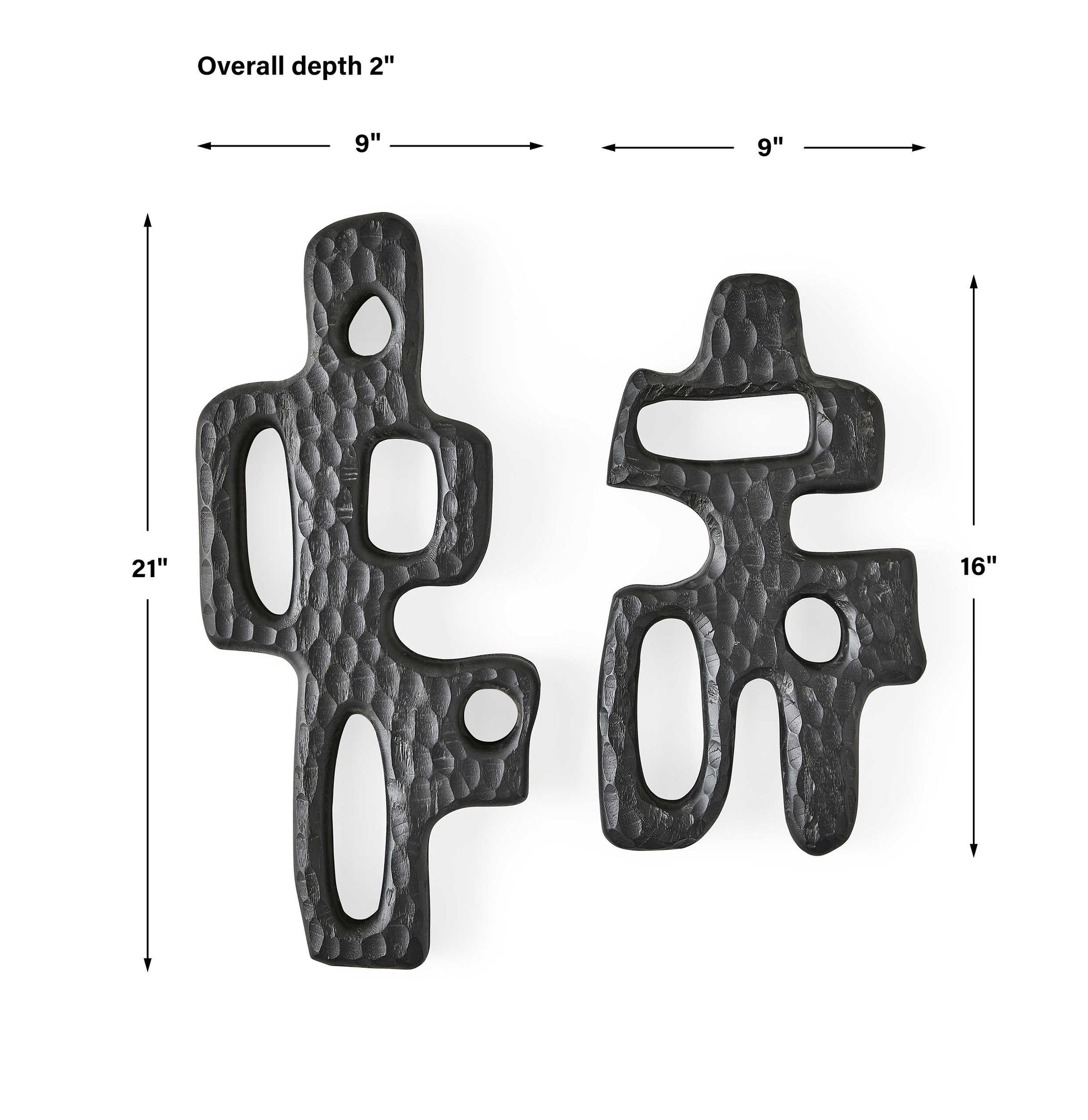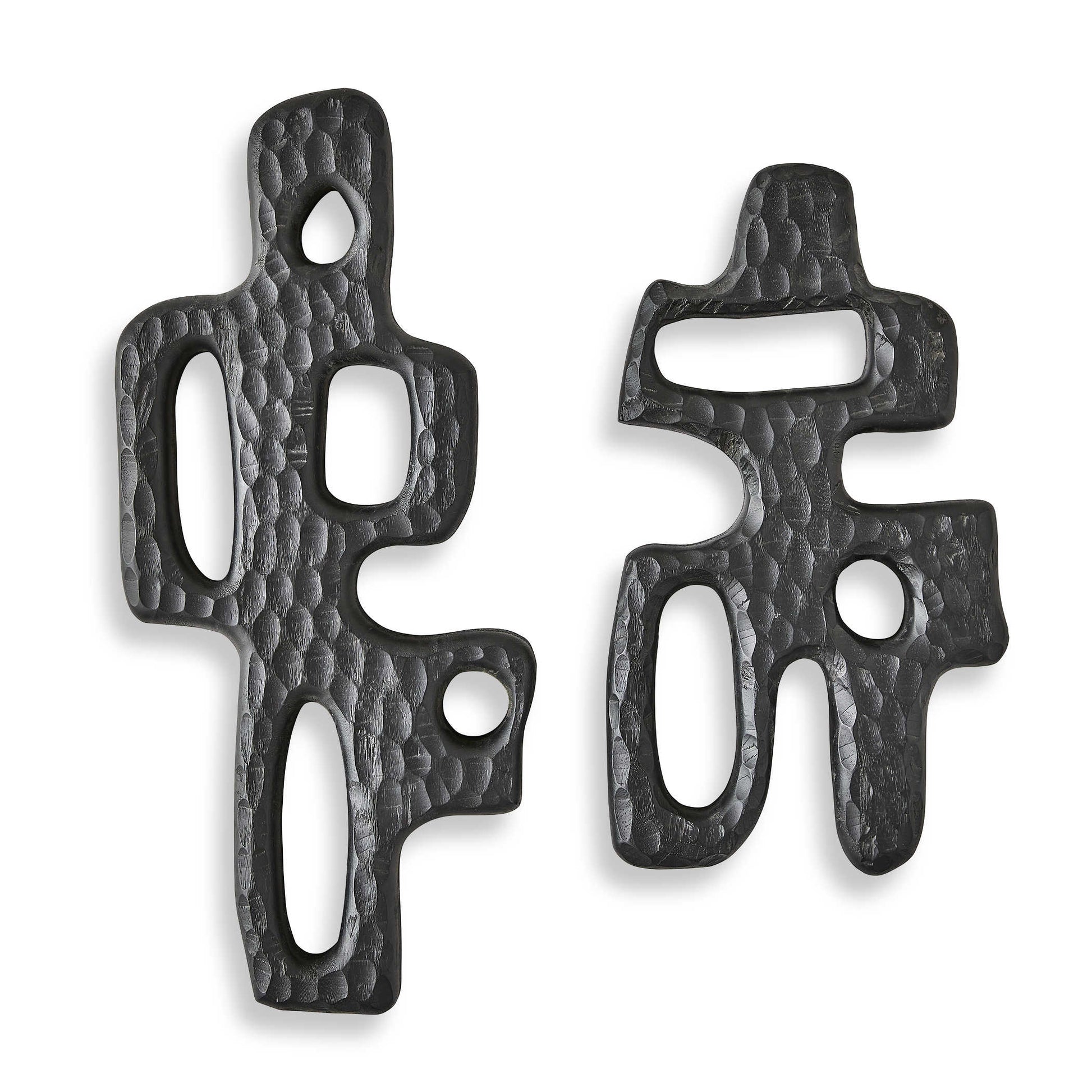 Inspirados en los antiguos jeroglíficos, este conjunto abstracto de dos esculturas de pared están cinceladas en madera maciza de mango. Combínelo con las esculturas independientes que lo acompañan o mézclelo con arte enmarcado para obtener una impresionante exhibición en la pared. Tallas: S-9x16x2, M-9x21x2