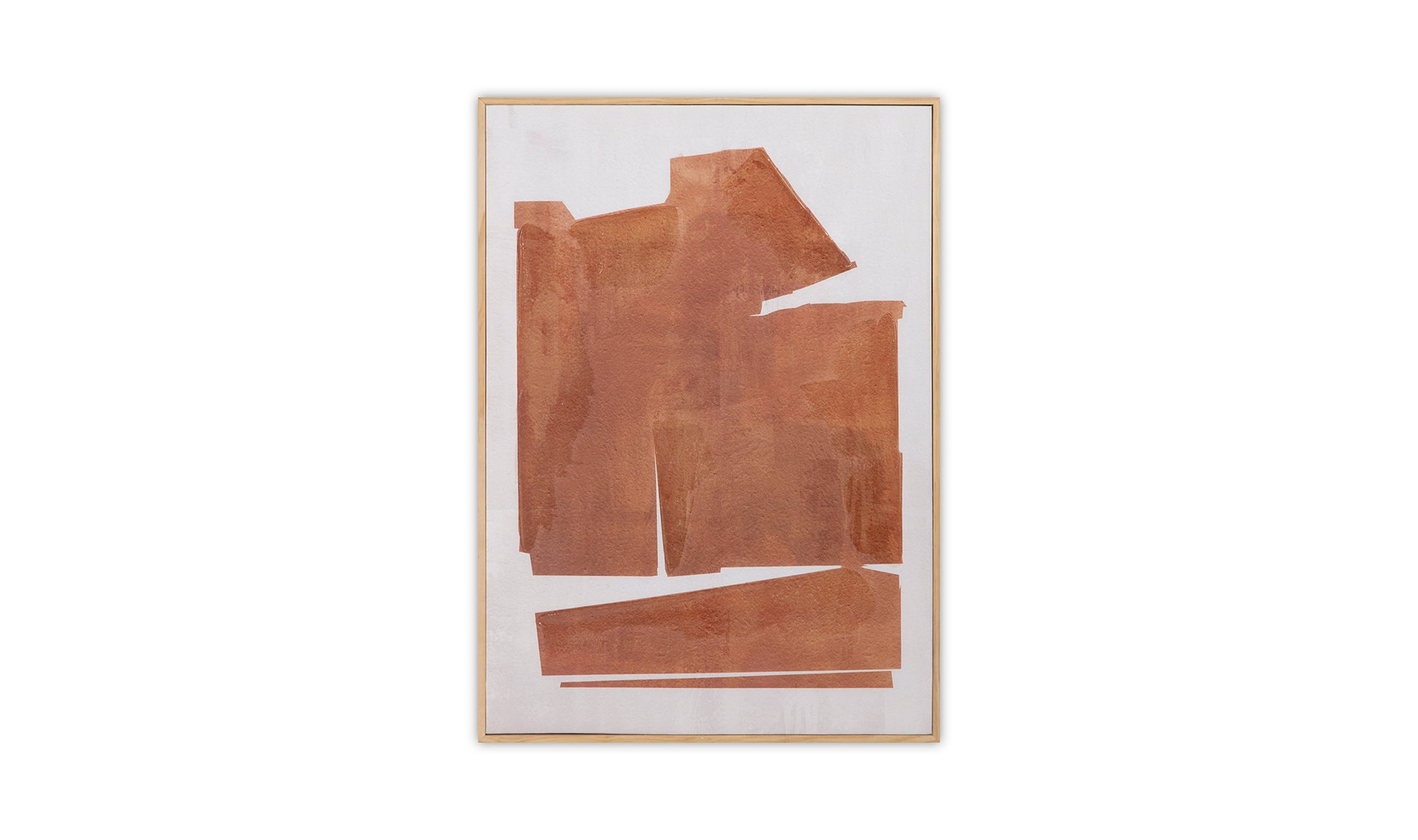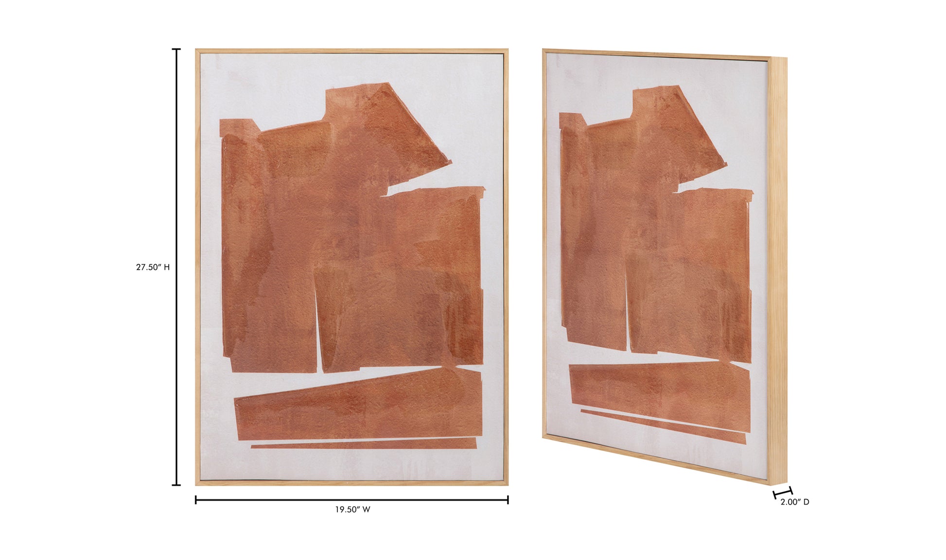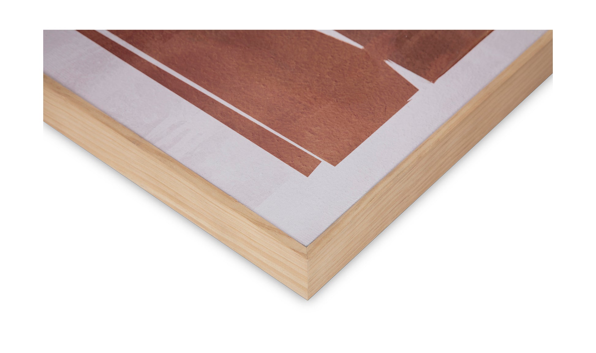 Una pintura con una abundancia de encanto abstracto donde los ángulos agudos se suavizan elegantemente con tonos apagados, los tonos rosas y naranjas complementarios de Cici evocan una calidez terrosa, creando una composición serena pero sorprendente: una pieza cautivadora terminada por expertos con un marco de pino macizo.