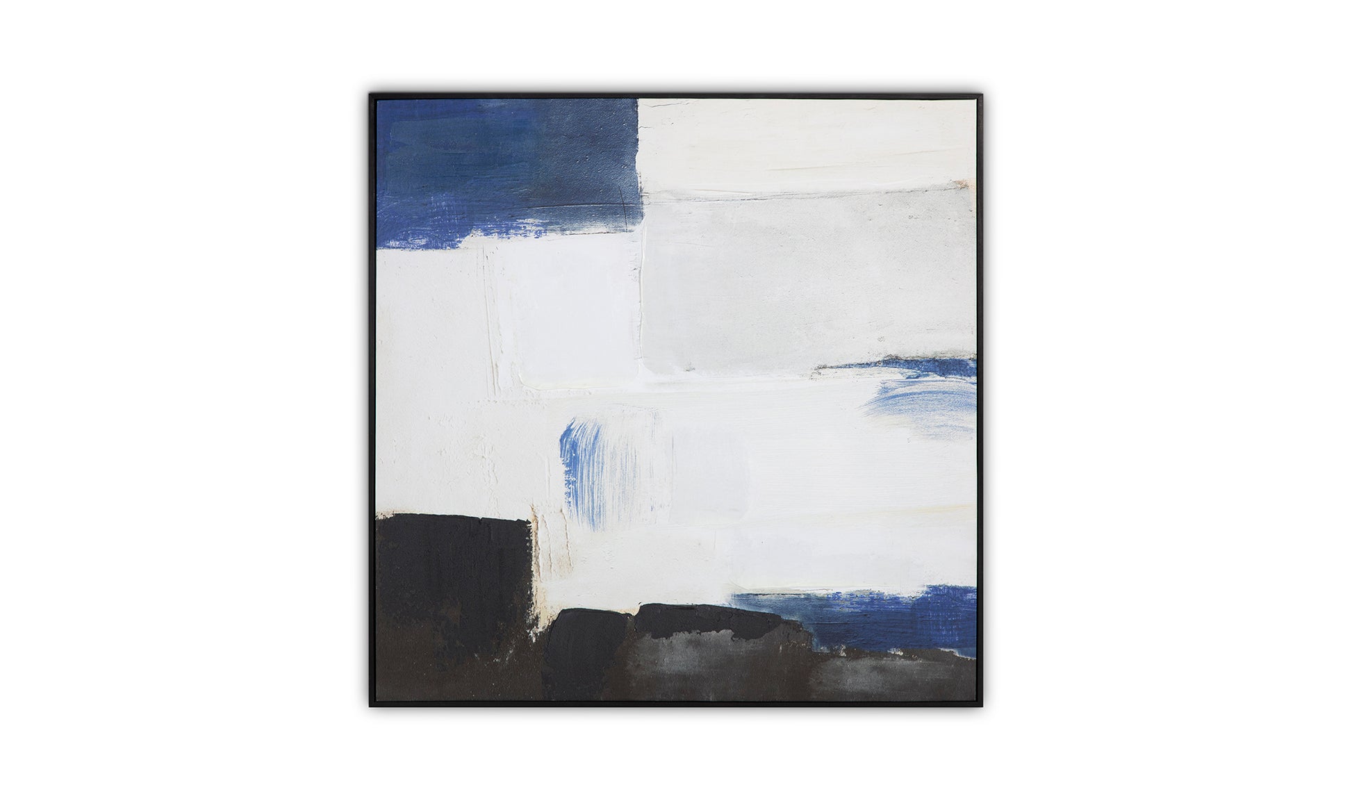 El azul cobalto intenso ocupa un lugar central en el estampado enmarcado Verve, acentuado por la paleta neutra en blanco y negro y bellamente acabado con un marco de pino macizo. Las formas lineales se componen de pinceladas tenues y visibles y tonos armoniosamente mezclados, creando un exquisito equilibrio entre audacia y sutileza.