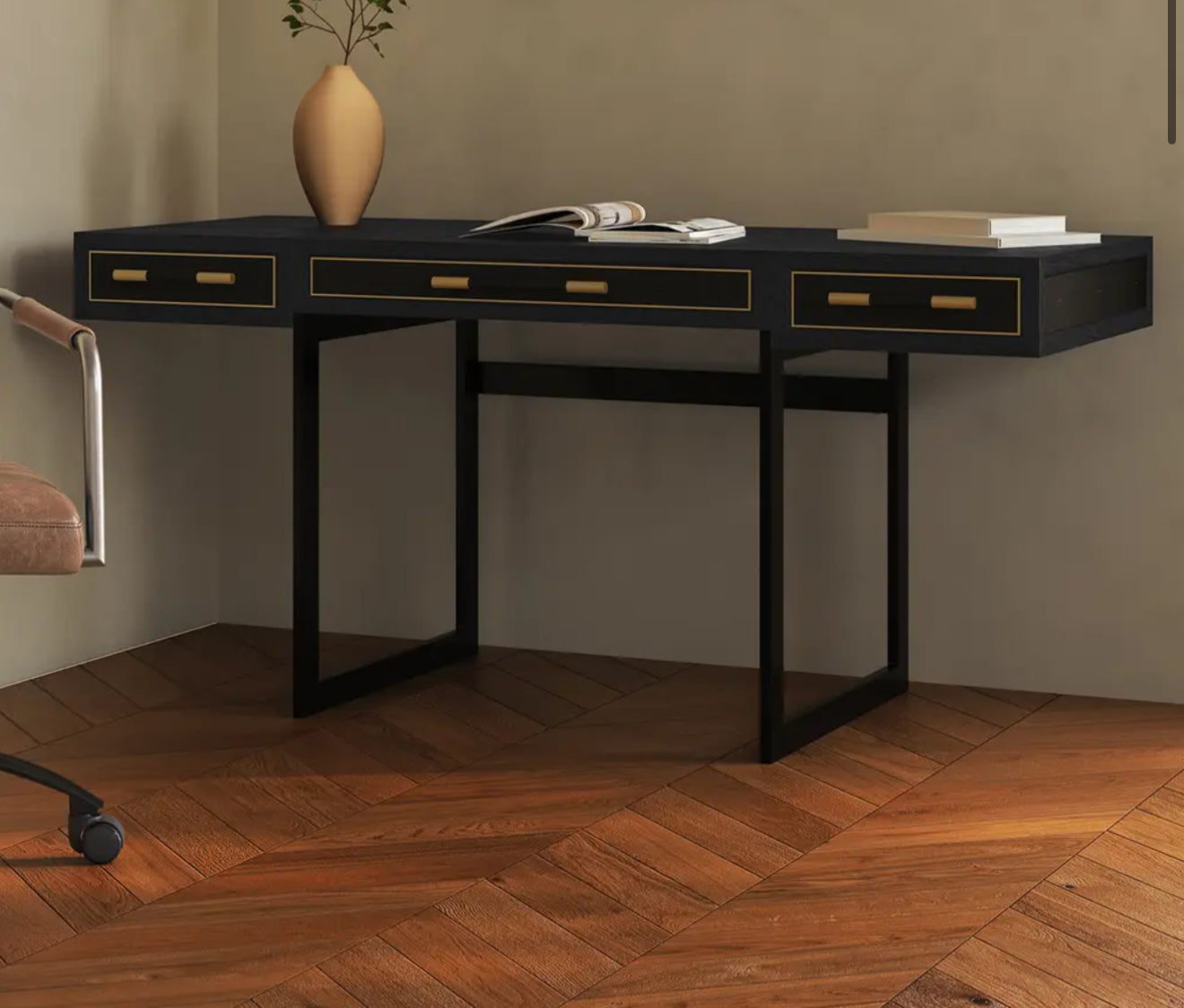 - Este escritorio cuenta con un elegante diseño art deco que es atractivo y práctico