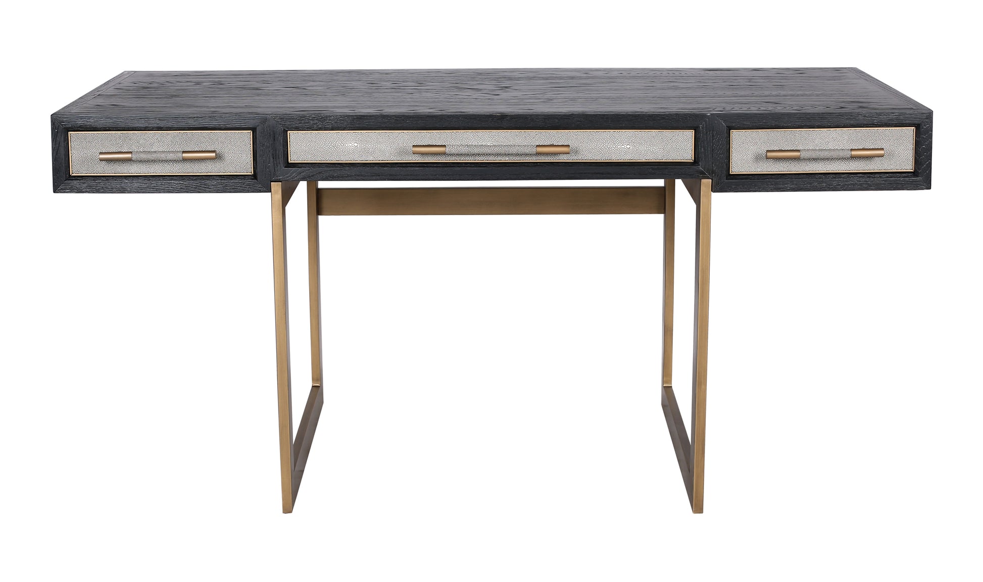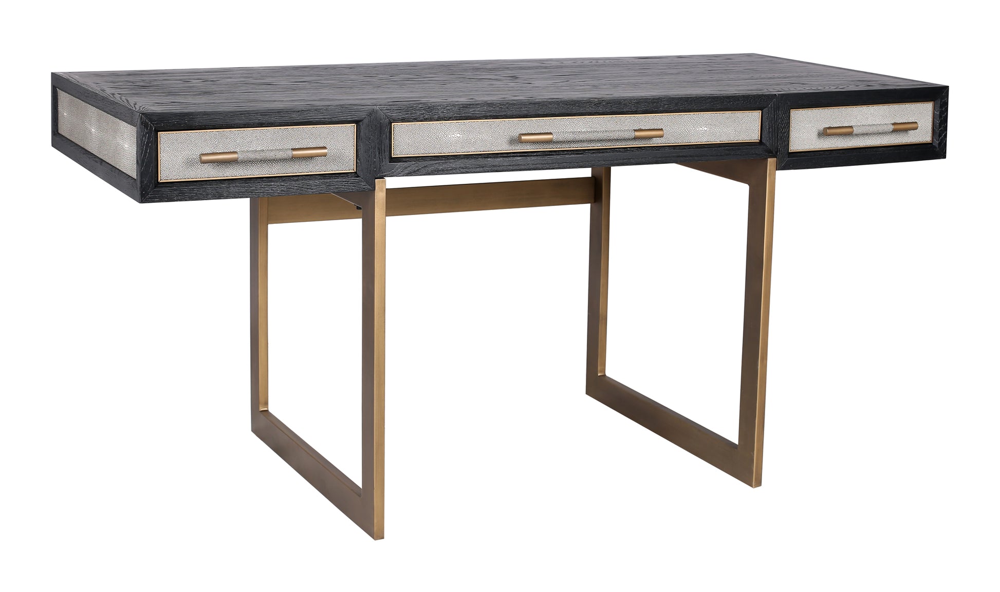¿Te apetece el glamour atemporal del art déco con un toque moderno? Conoce la colección Mako. Con cada artículo tapizado en cuero vegano shagreen de la más alta calidad, la colección Mako aporta estilo, textura visual y sustancia sin esfuerzo a su espacio vital. Con un diseño de tres cajones y un amplio tablero, este escritorio ofrece un toque chic elemental a cualquier oficina o espacio habitable. Un icono elegante y minimalista, el escritorio Mako te hará contar las horas hasta que puedas volver al trabajo.