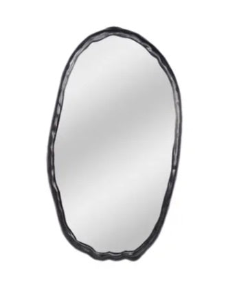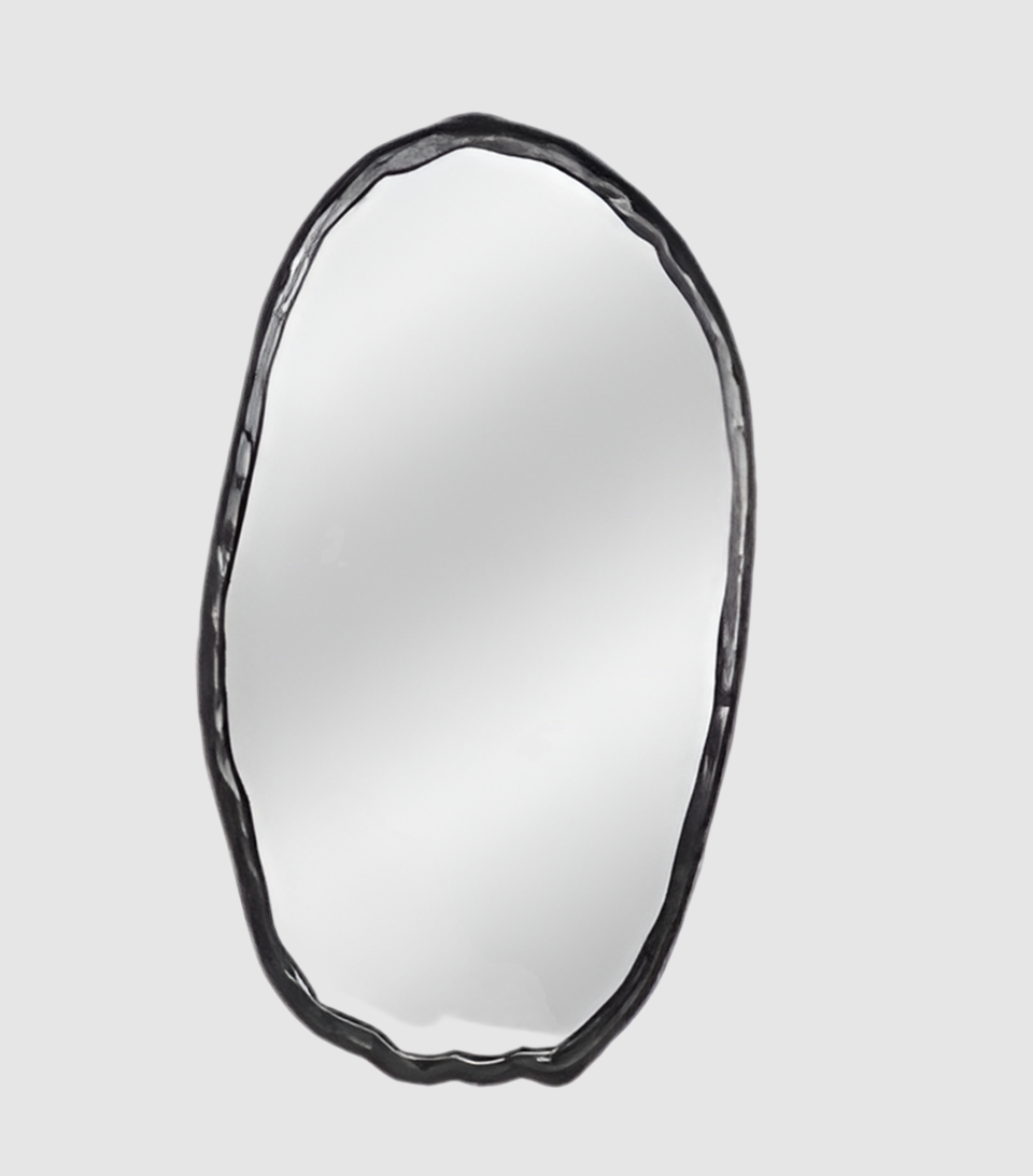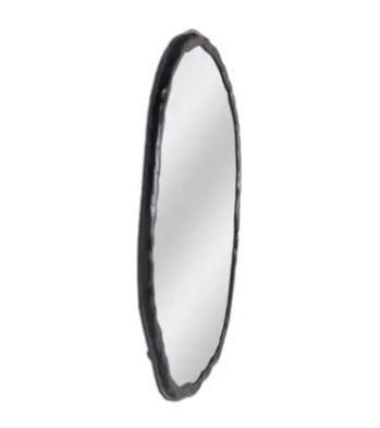 Amplifica esos reflejos positivos con esta belleza negra. El espejo de pared ovalado Foundry se colgará en el centro donde más haya estado mirando. Los espejos iluminan tu espacio en un instante, y este se cuelga fácilmente en un marco de aluminio más liviano. Artísticamente rústico con un toque orgánico en su diseño similar a la madera.