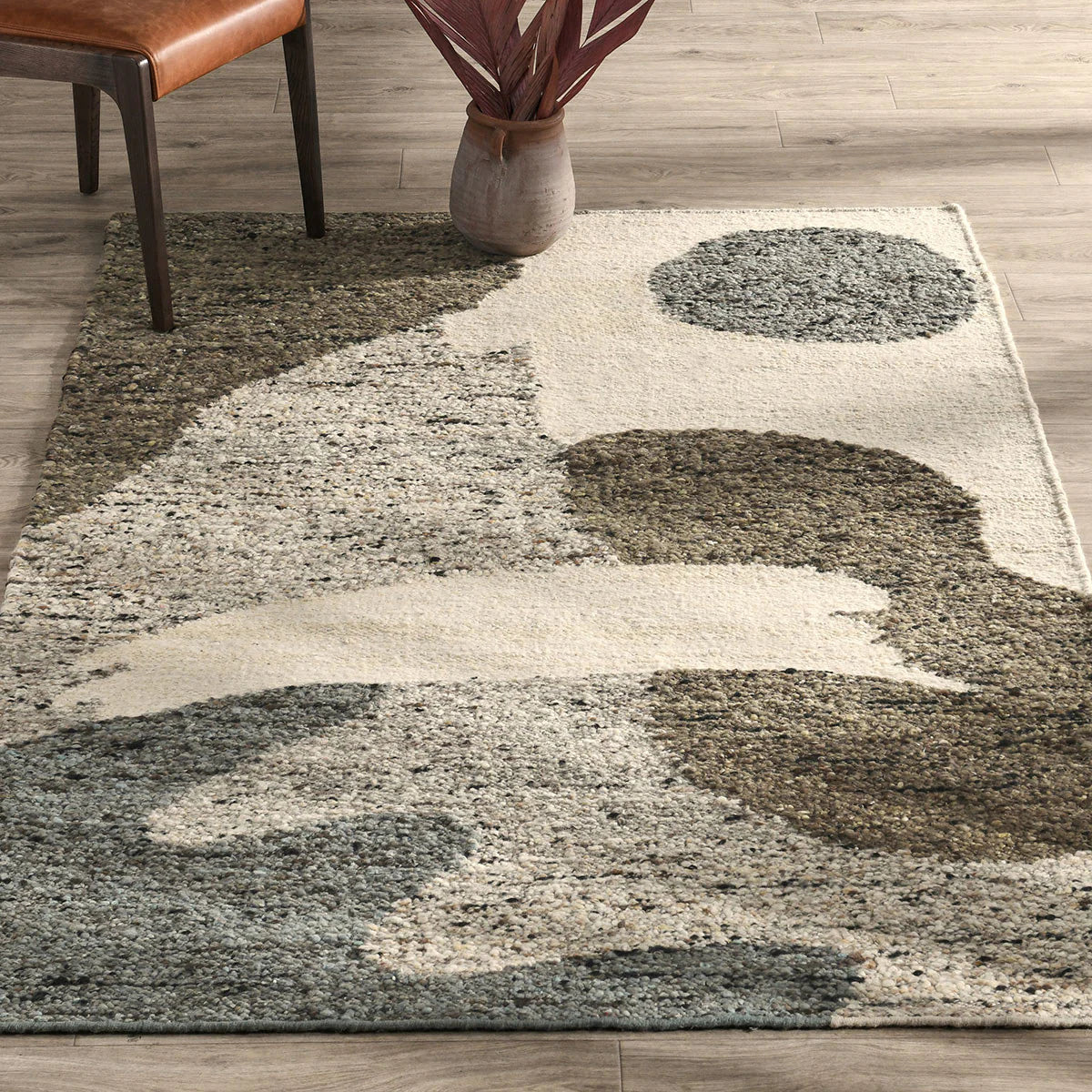 Llena de energía visual, esta alfombra tejida a mano presenta un moderno patrón abstracto acentuado por una rica textura y contraste. La tela de lana cardada a mano le otorga a esta alfombra artesanal un aspecto y tacto majestuosos, a la vez que le confiere un efecto tonal variado que complementa la mayoría de las paletas de colores. La lana garantiza una gran durabilidad, a la vez que la convierte en una opción ecológica y sostenible.