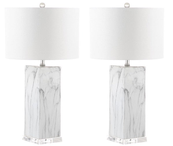 Epítome del estilo clásico, esta lámpara de mesa contemporánea de mármol es atemporal. Diseñada con un acabado liso y pulido, sus vetas blancas y negras se integran en cualquier decoración. Ideal para usar en pareja en la sala de estar, enmarcando un sofá o creando una zona de conversación.
