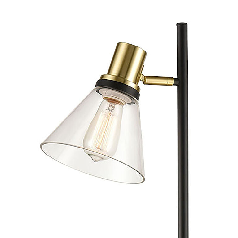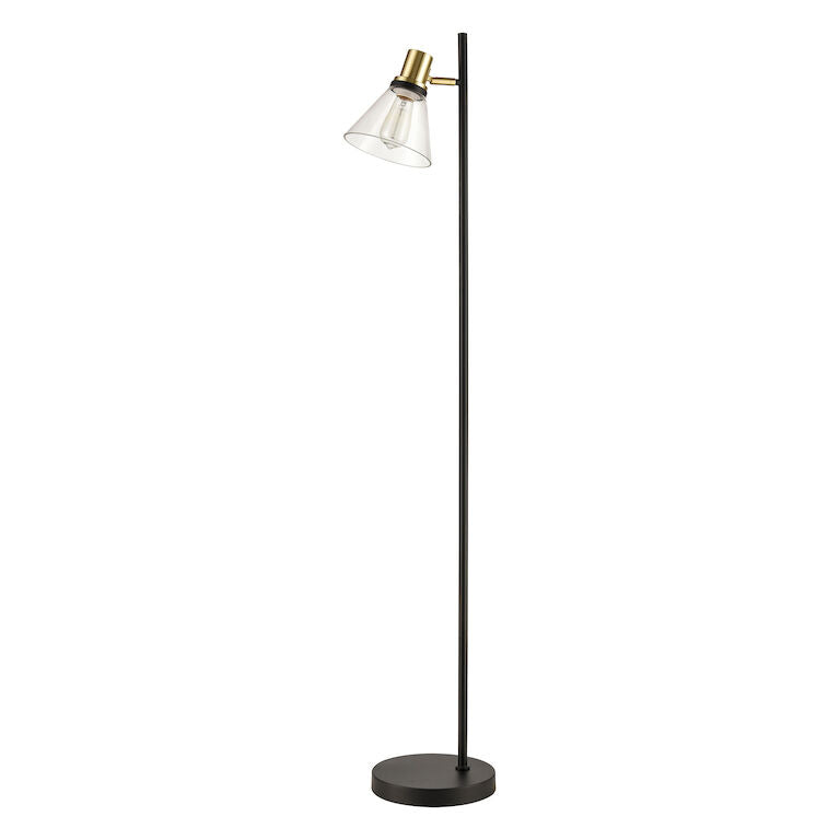 Con un soporte de metal con un acabado negro con lujosos detalles en oro y una pantalla de vidrio transparente, la lámpara de pie Treno combina un diseño funcional de mediados de siglo con una elegancia moderna y sin esfuerzo. Asegurada a una base redonda de metal para mayor estabilidad, esta lámpara de una sola bombilla es ideal para llevar la luz ambiental a las esquinas o áreas de asientos. Este diseño tiene un interruptor de pie conveniente.