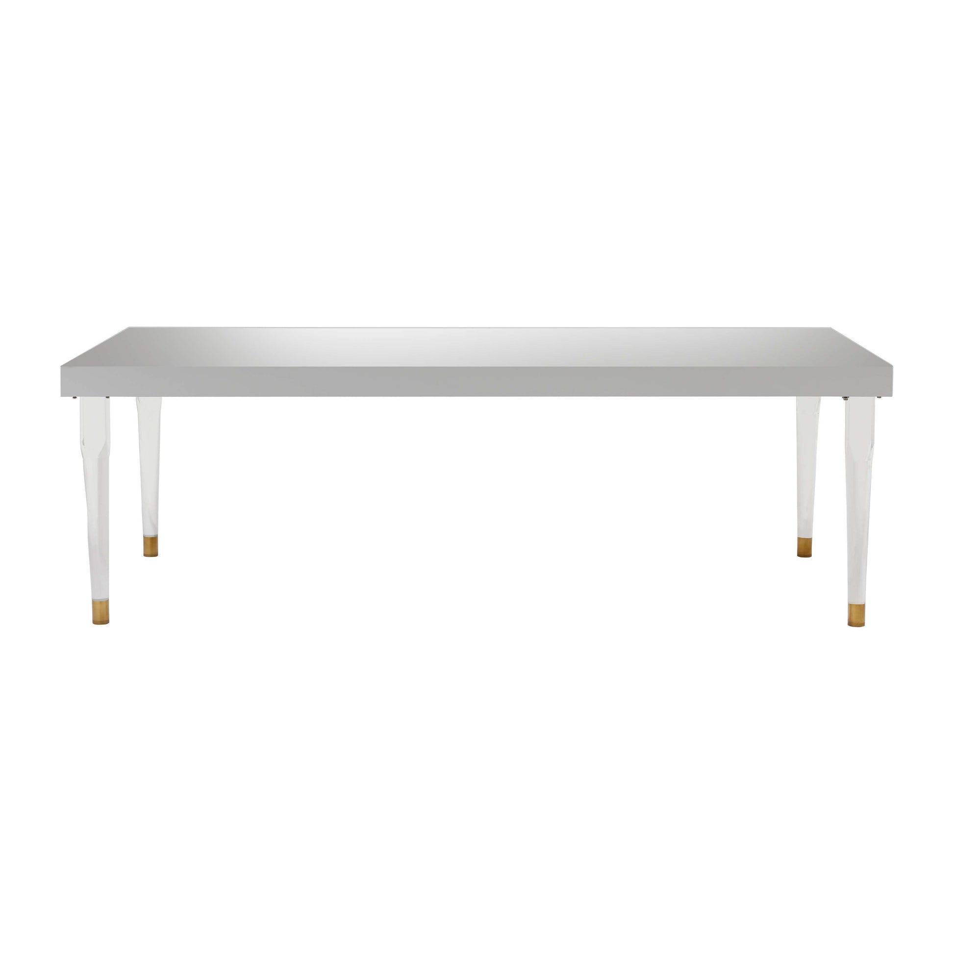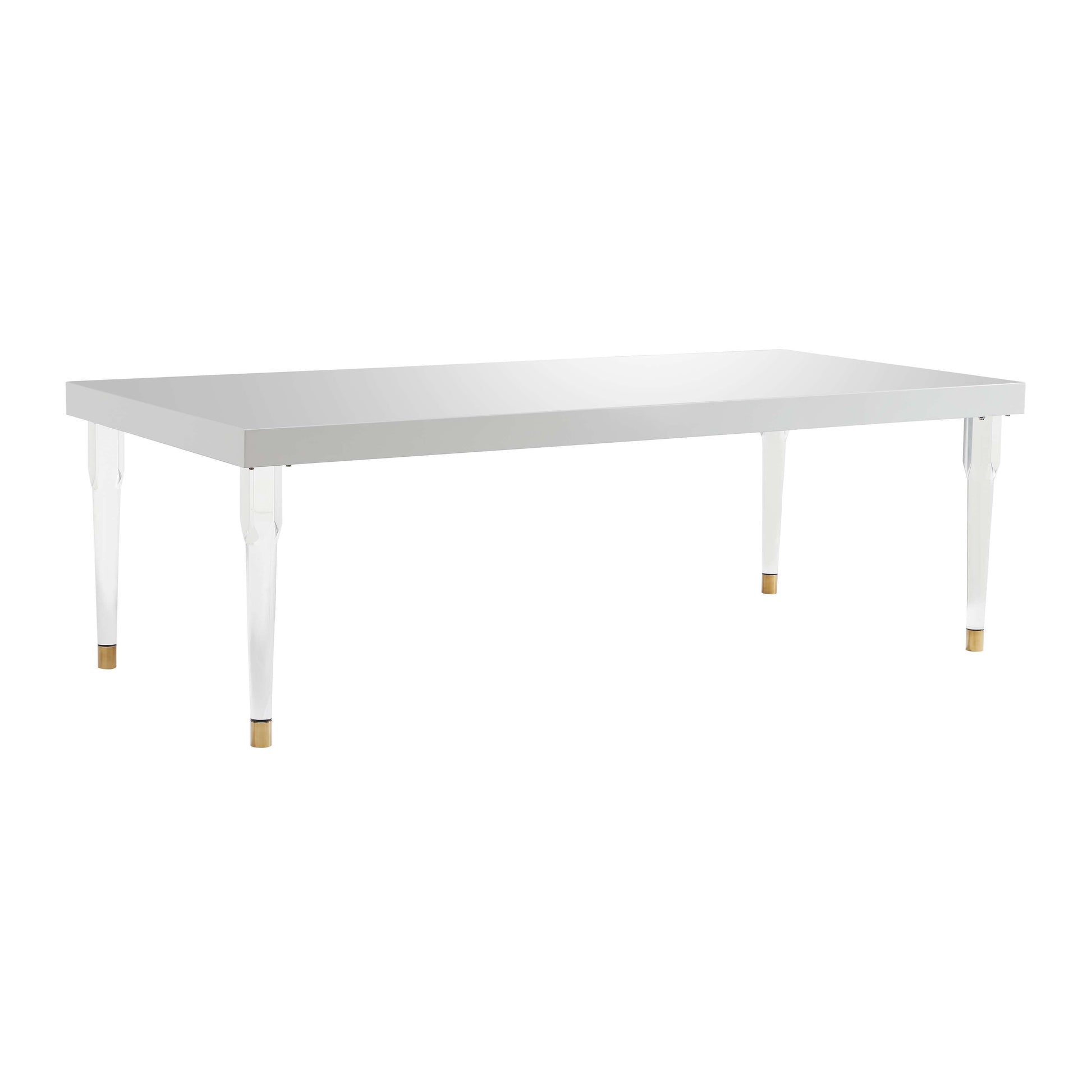 Inspirada en nuestro amor por la decoración glamorosa de Hollywood, la mesa Spindle Tabby es la pieza de declaración que ha estado buscando. Su tapa de laca blanca brillante complementada con sus cuatro patas de acrílico transparente, se combinan perfectamente para agregar un estilo de transición a su espacio de comedor.