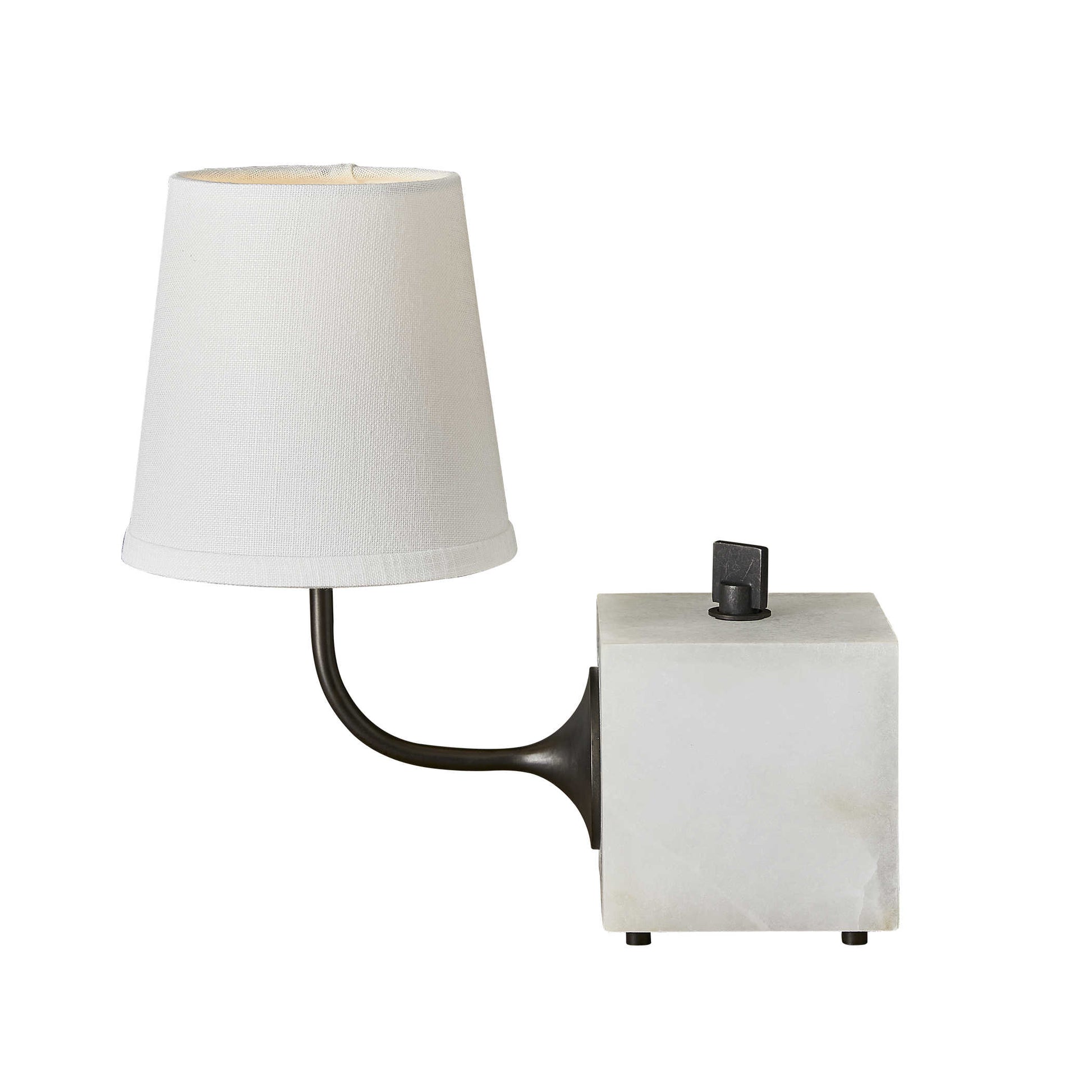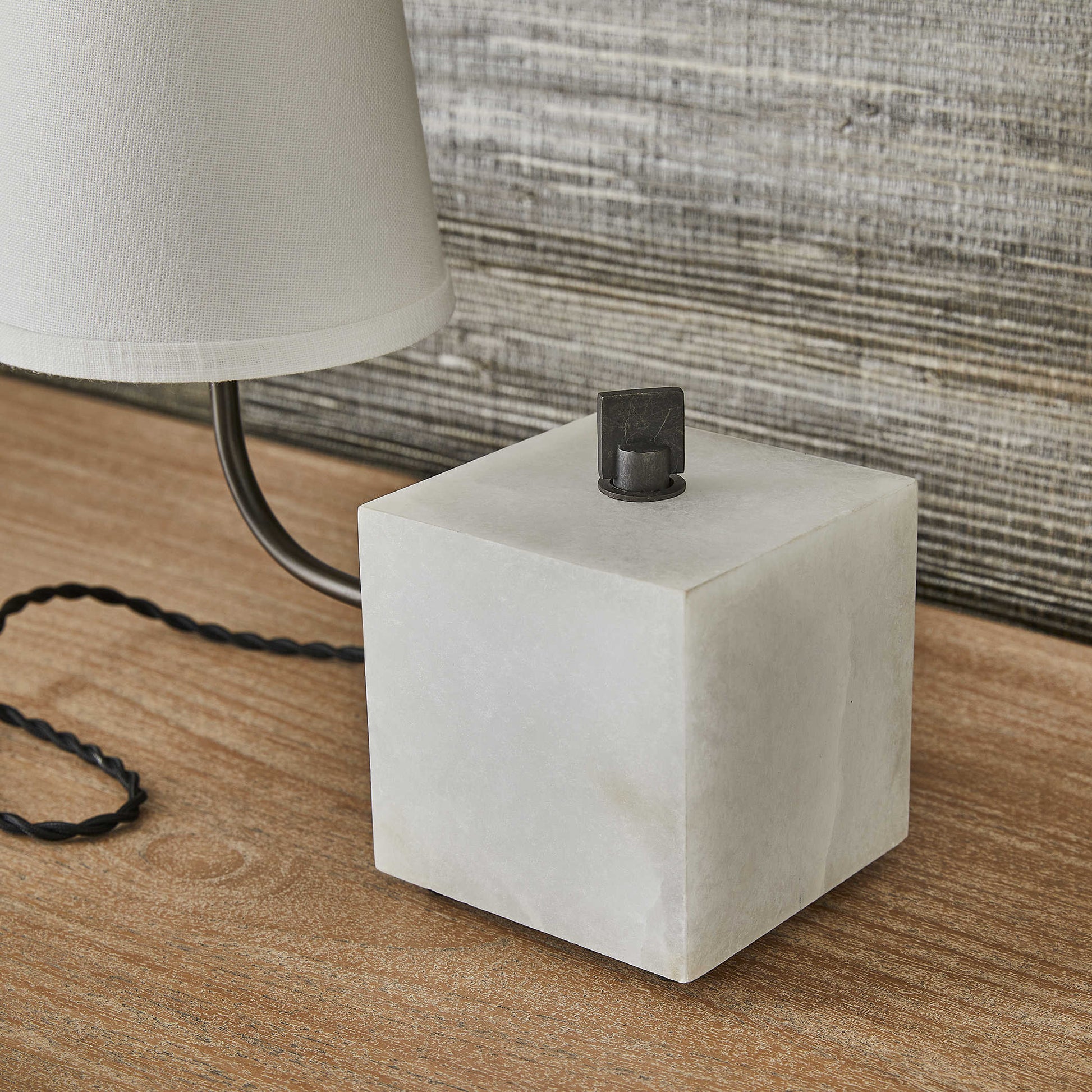 Ríete del nombre, ¡pero estas mini lámparas no son una broma! Sus detalles clásicos los hacen perfectos para ubicaciones en toda la casa: estanterías para libros, mesas auxiliares, mesa íntima para dos. La elegante pantalla cónica blanca contiene un detalle de ajuste automático. El cuello de cisne en acabado bronce ácido permite que la luz se extienda hacia su brillo. La base de alabastro blanco contiene inteligentemente un atenuador giratorio en la parte superior y los cuatro pies permiten un control óptimo del cordón de tela trenzado negro.