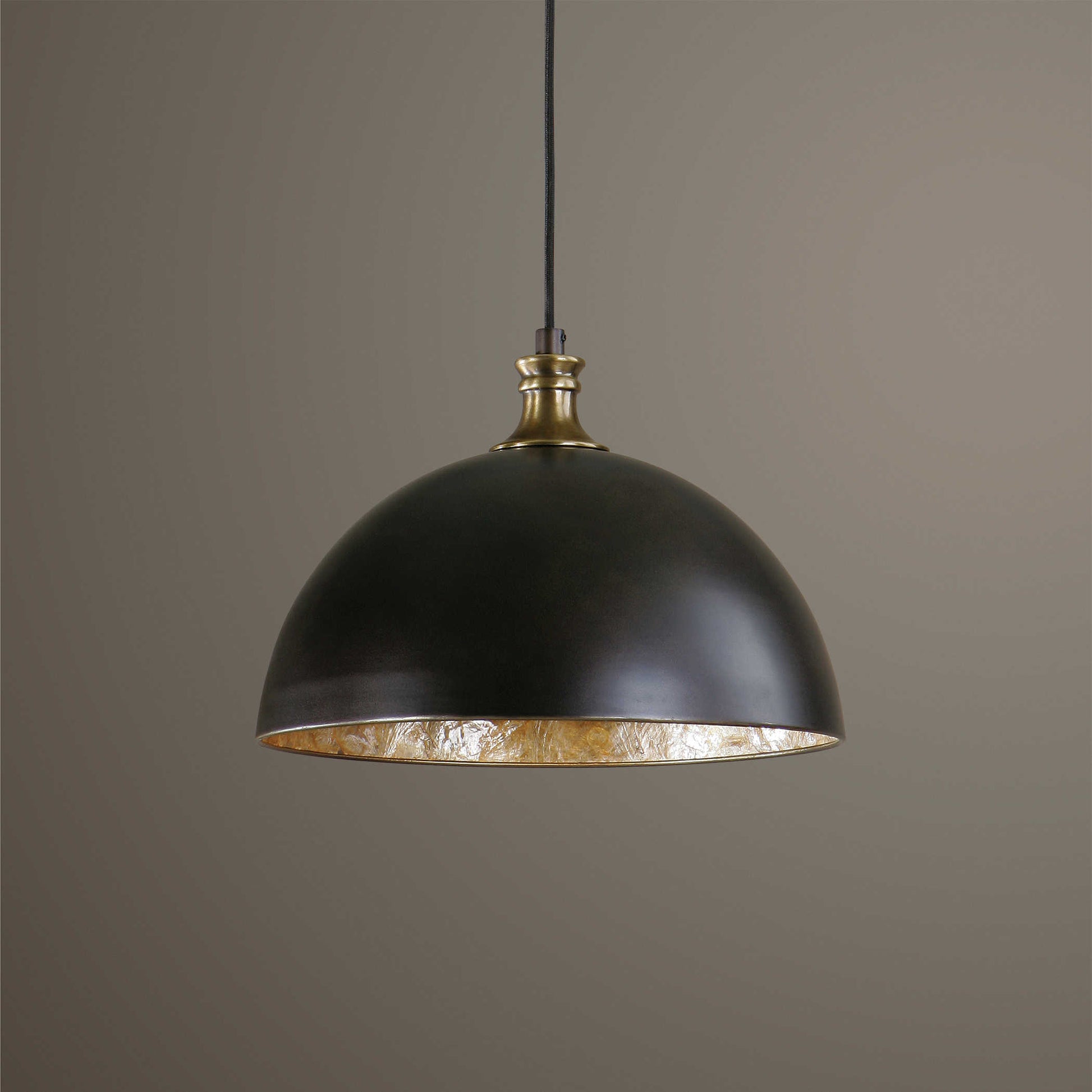 Tomamos la apariencia simple de un colgante de cúpula de metal en un acabado de bronce pacífico con detalles en latón antiguo y le agregamos un toque de opulencia agregando una cálida concha de capiz envejecida y forramos el interior para lograr un maravilloso estilo de transición. Bombilla de estilo antiguo BT58 de 60 vatios incluida.