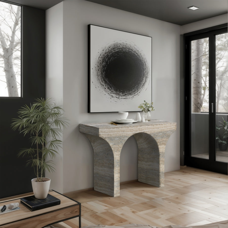 Materiales: Madera de caucho fabricada, acabado de mármol travertino