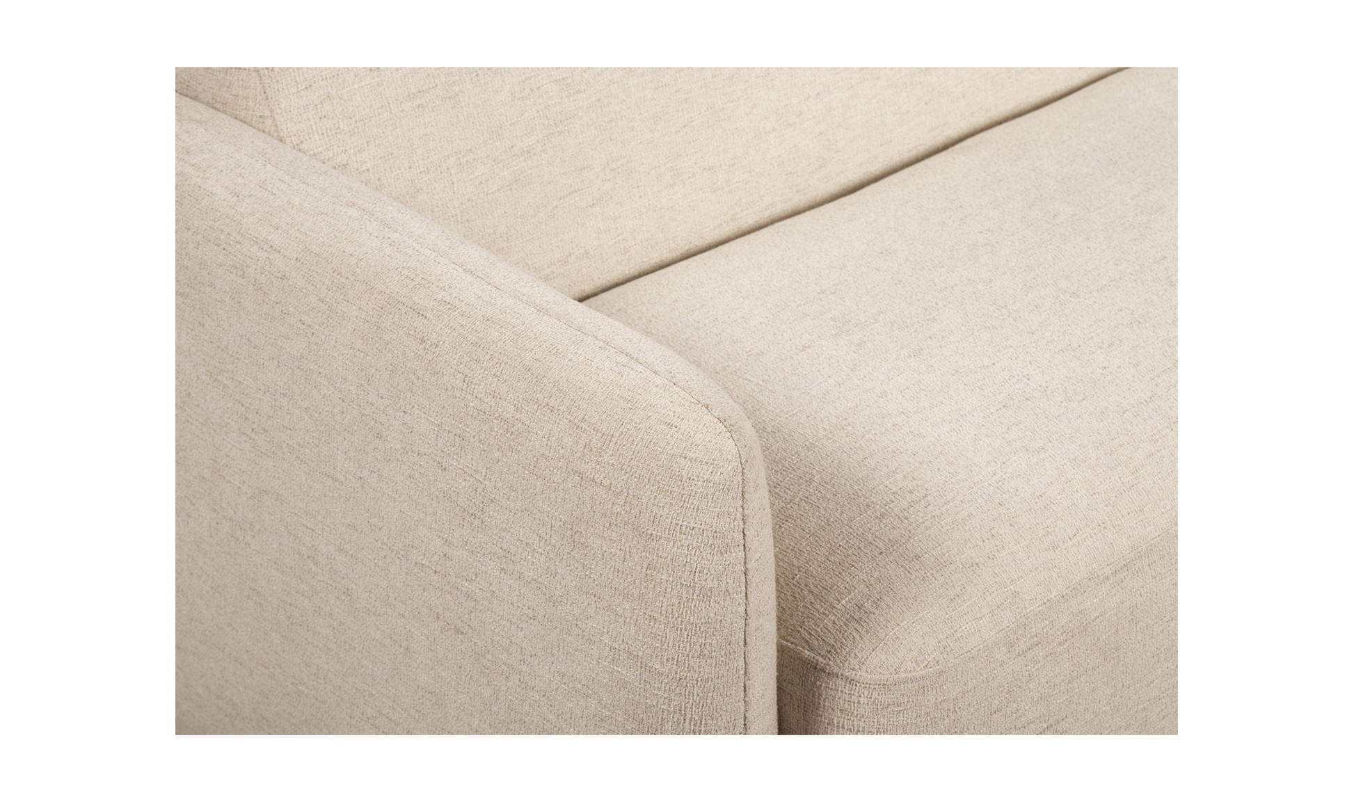 Material: 100% poliéster, estructura de pino macizo y madera contrachapada, soporte de cincha elástica, espuma de alta densidad