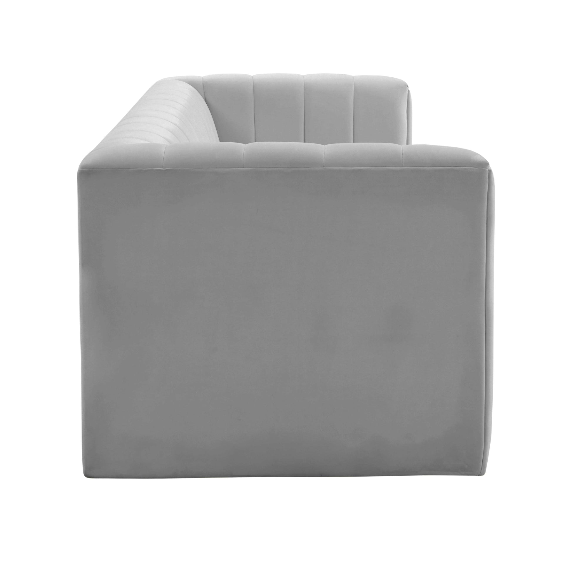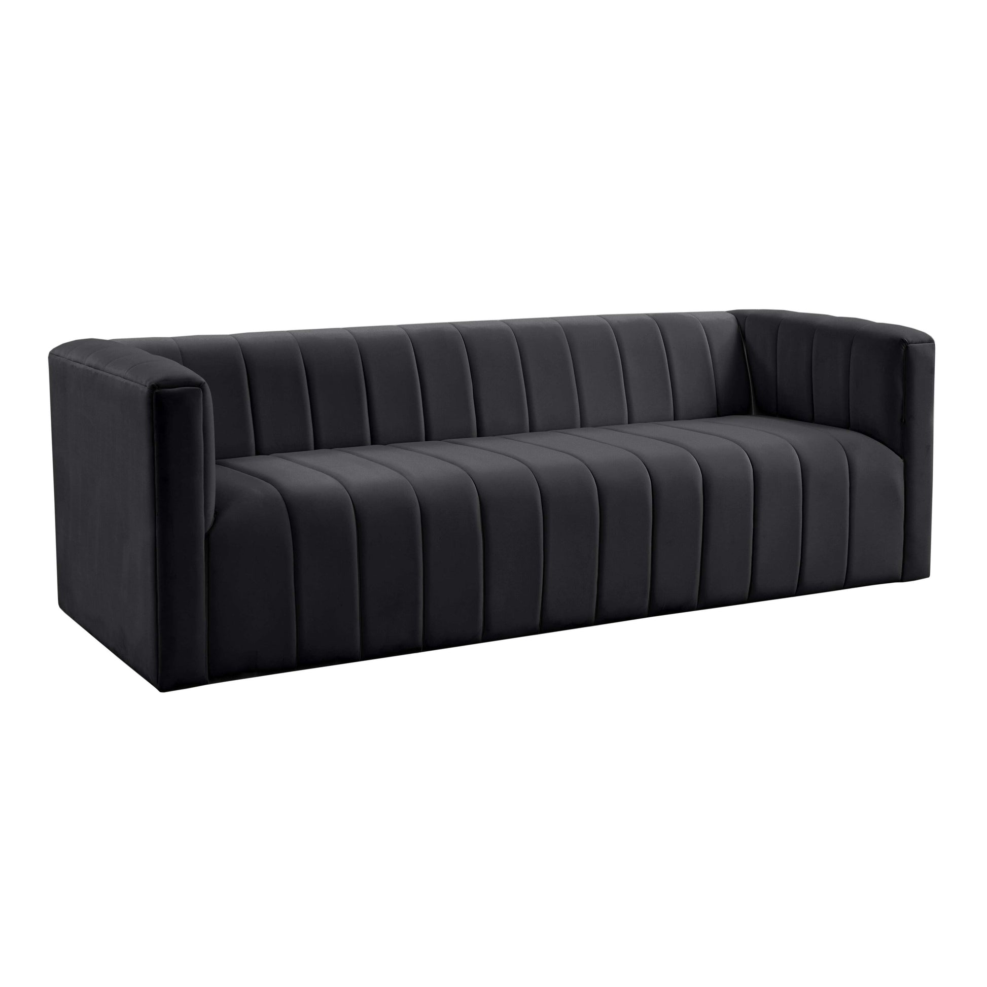 Con un estilo fresco y moderno, el sofá Norah presenta una lujosa tapicería de terciopelo, brazos de esmoquin y elegantes acanaladuras. Su estructura de pino secado al horno y su relleno de espuma de alta densidad ofrecen comodidad y durabilidad supremas. Disponible en varios colores para adaptarse a sus preferencias de estilo.