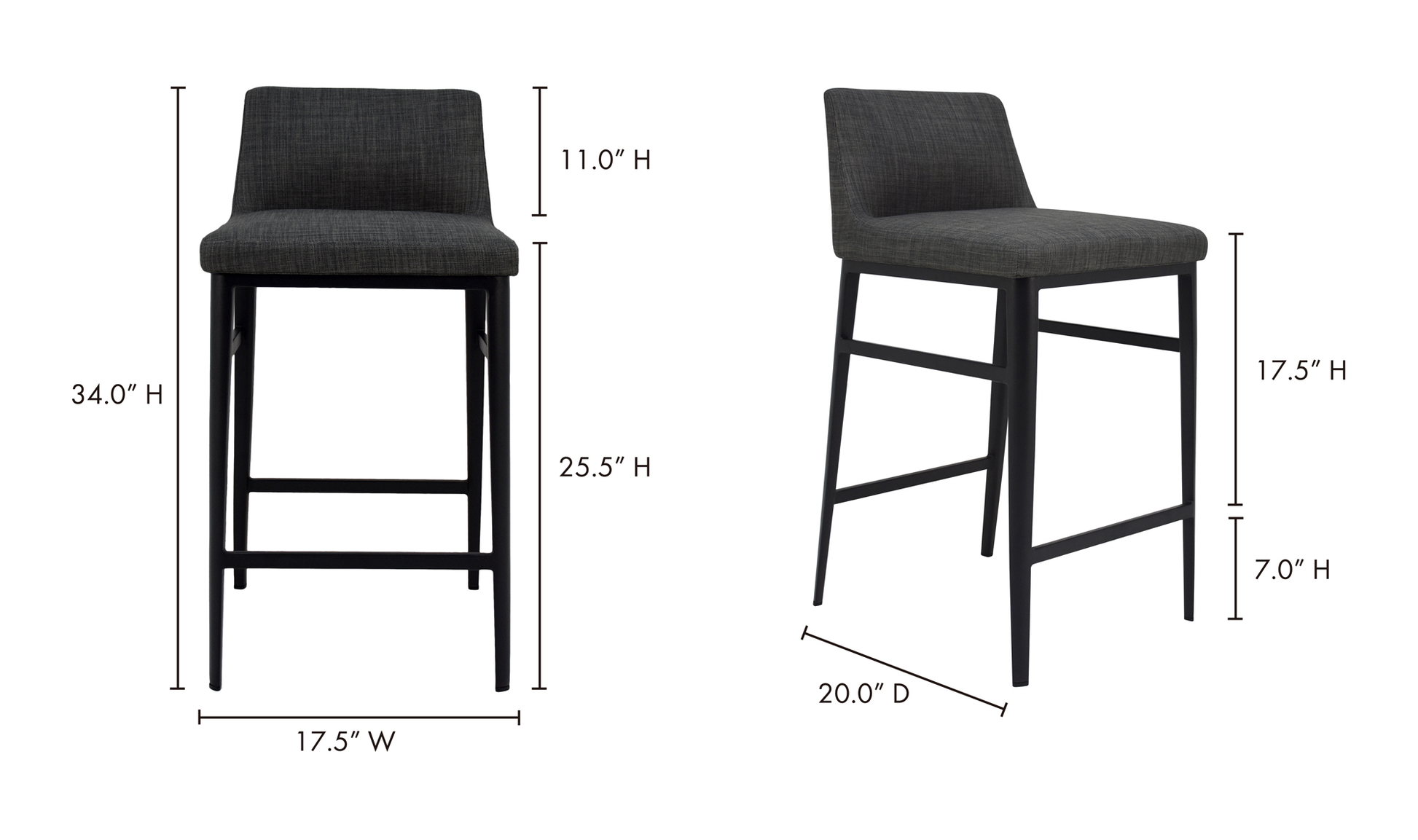 El perfil de respaldo bajo del taburete de mostrador Baron le da una estética elegante y compacta. La tapicería de mezcla gris carbón agrega textura y sofisticación a su espacio de comedor o cocina.