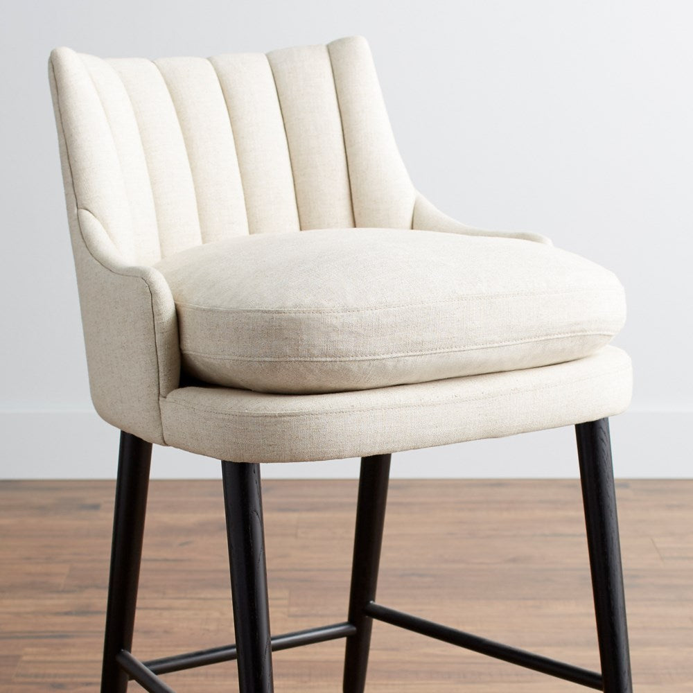 Ya sea que se coloquen en una isla de cocina, para acurrucarse en un rincón de desayuno o para darle a su espacio de entretenimiento una cómoda percha, los taburetes de bar Tesoro son una solución de asiento versátil en la que se puede trabajar en toda su casa. Con una base de madera negra con elegantes acentos dorados, este taburete de respaldo completo está tapizado con relleno de espuma para un asiento acogedor en cualquier espacio. El asiento está disponible en una opción de color negro o crema, y cuenta con una elevación más alta de lo habitual, perfecta para sus necesidades de barra en la encimera en cualquier espacio moderno, ecléctico o de estilo medio.