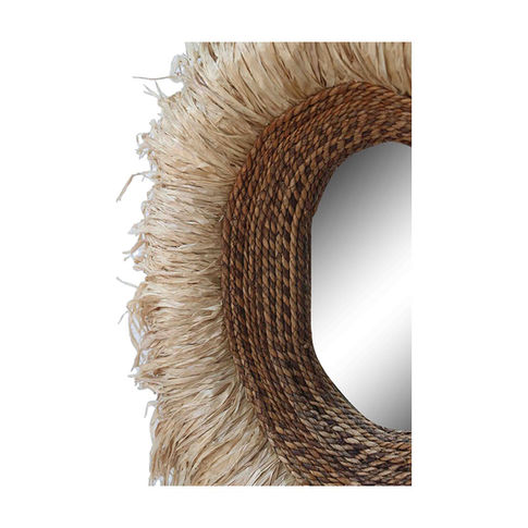 Aporta textura orgánica y un toque internacional a tu hogar con este espejo artesanal. Enmarcado en fibra de plátano tejida y adornado con un espectacular halo de sisal natural, logra el equilibrio perfecto entre elegancia rústica y diseño audaz. Las fibras superpuestas crean una silueta inspirada en un sol radiante que añade calidez, profundidad y dinamismo a cualquier pared. Ideal como pieza central en la entrada, la sala de estar o el dormitorio, este espejo fusiona la artesanía tradicional con una estética vibrante de inspiración tribal.